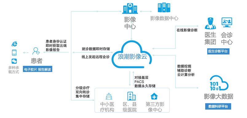 凯发K8国际智慧医疗结合多年的医疗大数据、区域平台的行业经验和技术积累,顺利获得实现影像数据即时存储与调阅、多源数据融合、统一制定数据标准、完善数据管理等技术手段,建立数字胶片、区域影像平台、云会诊、远程影像诊断、人工智能辅助诊断、三维重建等能力,面向各医疗组织给予一个区域网络化、线上化、全方位的影像云系统,实现影像数据互联互通、影像信息即时共享,同时促进各级医疗组织协同办公,提升影像诊断水平。